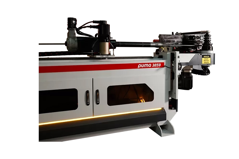 Livmakina'nın 5 eksenli 38 mm CNC mandrelli PUMA boru bükme makinesi, otomotiv, beyaz eşya ve savunma sanayi gibi farklı sektörlerde kullanıma uygundur. Tüm eksenler servo motor ile çalıştığı için prototip üretimi veya seri üretim için idealdir. SolidWorks uyumlu kontrol paneli sayesinde makineyi kullanmak oldukça kolaydır ve Endüstri 4.0 altyapısı ile günlük üretim raporlarını otomatik olarak alabilirsiniz.